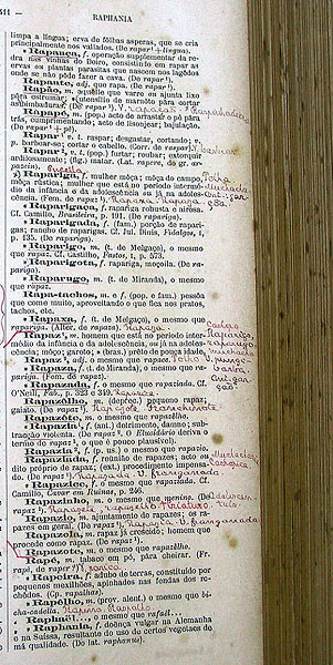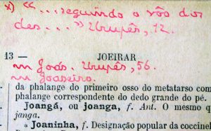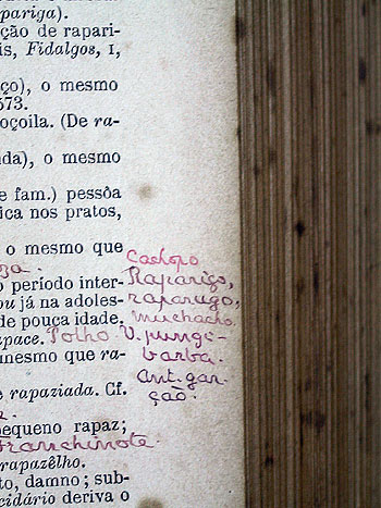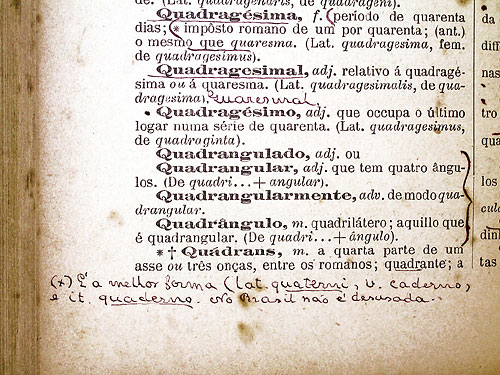 não só quanto ao seu emprego, como também em uma meticulosa coleta de dados. Seus exemplares do Novo dicionário da língua portuguesa, de Cândido de Figueiredo, em três diversas edições, são todos anotados. Rui Barbosa ia “completando” os livros com novas acepções, variantes regionais, abonações em textos clássicos (como Padre Antônio Vieira) e textos de autores contemporâneos (como Monteiro Lobato).